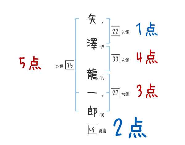 矢澤龍一郎さんの画数の鑑定結果