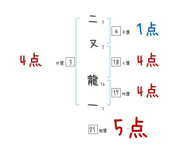 二又龍一さんの画数の鑑定結果