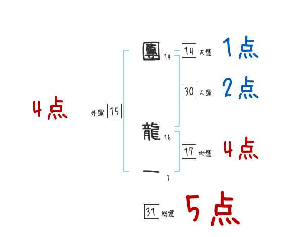 團龍一さんの画数の鑑定結果