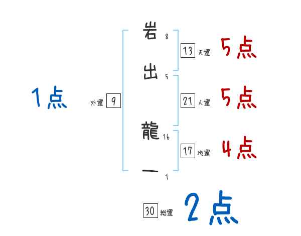 岩出龍一さんの画数の鑑定結果