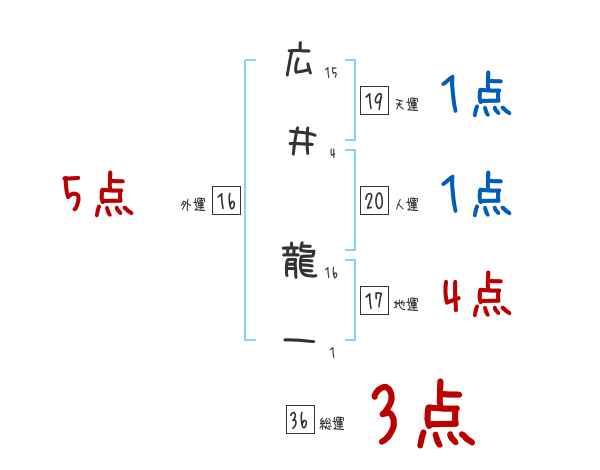 広井龍一さんの画数の鑑定結果