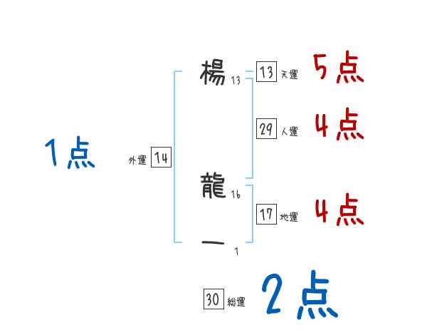 楊龍一さんの画数の鑑定結果