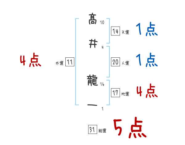 髙井龍一さんの画数の鑑定結果