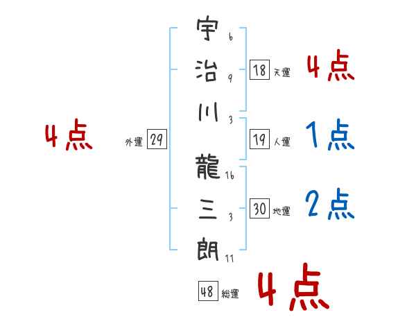 宇治川龍三朗さんの画数の鑑定結果
