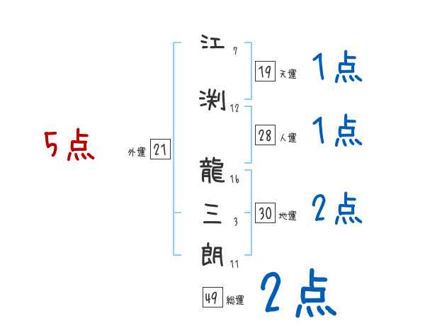 江渕龍三朗さんの画数の鑑定結果