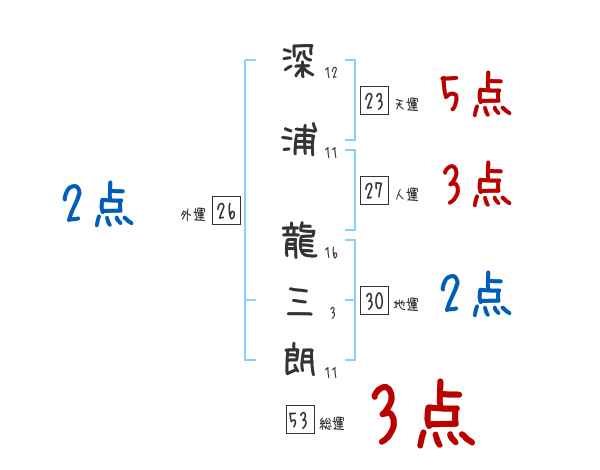 深浦龍三朗さんの画数の鑑定結果