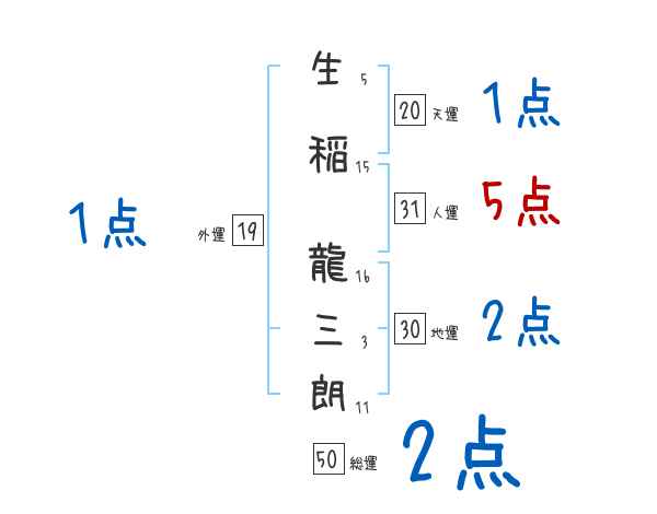 生稲龍三朗さんの画数の鑑定結果