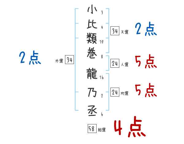 外運![]() | 小比類巻龍乃丞さんの外運は34画の2つ星!独創性に優れるが、自尊心が強く災難に注意しましょう。 生活面を象徴する運勢です。外部から受ける影響力を表し、結婚運、家庭運や職場、環境への順応性を表します。 |
