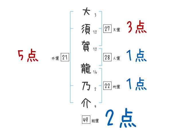 外運![]() | 大須賀龍乃介さんの外運は21画の5つ星!統率力がある。独立し成功する。名誉を手に入れる。 生活面を象徴する運勢です。外部から受ける影響力を表し、結婚運、家庭運や職場、環境への順応性を表します。 |