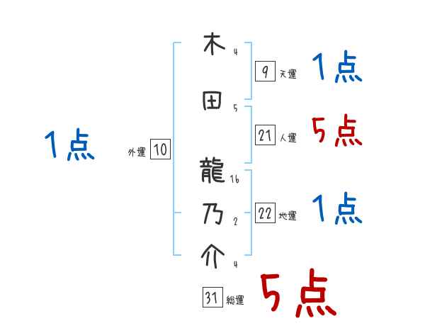 外運![]() | 木田龍乃介さんの外運は10画の1つ星!不安を感じやすい傾向。ストレスを抱えないように注意しましょう。 生活面を象徴する運勢です。外部から受ける影響力を表し、結婚運、家庭運や職場、環境への順応性を表します。 |