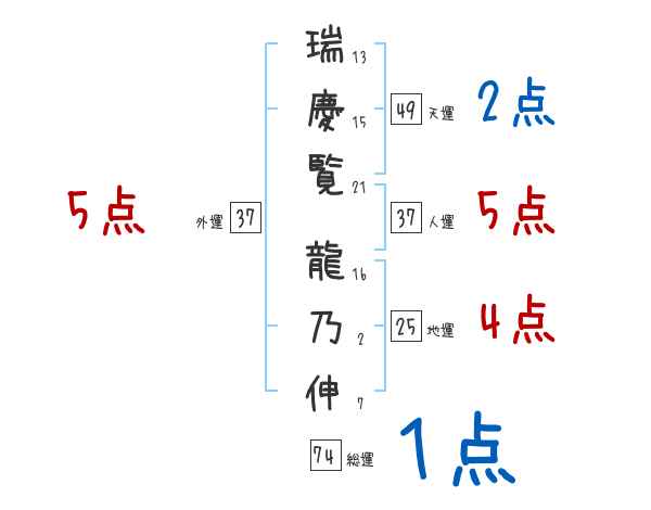 瑞慶覧龍乃伸さんの外運は37画の5つ星