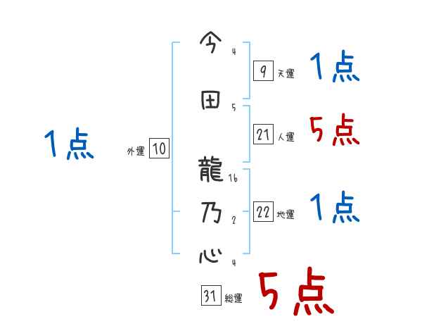 今田龍乃心さんの画数の鑑定結果