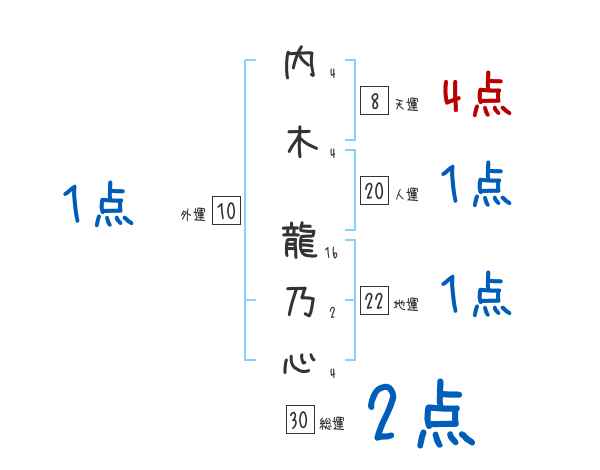地運![]() | 内木龍乃心さんの地運は22画の1つ星!努力することが苦手ないっぽう手先が器用。芸術性にも優れる。 個性を表す基礎的な運勢です。性格形成や対人関係、行動力など家庭環境に影響されます。主に誕生してから20歳くらいまでの若年期の運勢を表します。 |