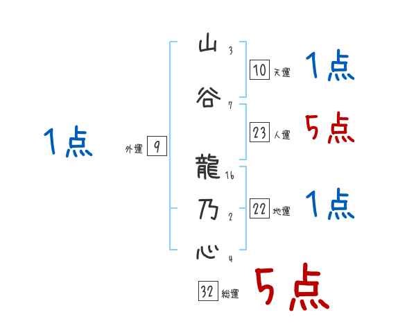 山谷龍乃心さんの画数の鑑定結果