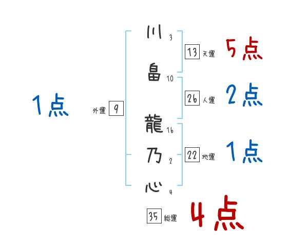 川畠龍乃心さんの画数の鑑定結果
