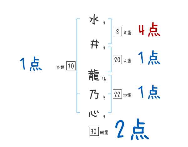 外運![]() | 水井龍乃心さんの外運は10画の1つ星!不安を感じやすい傾向。ストレスを抱えないように注意しましょう。 生活面を象徴する運勢です。外部から受ける影響力を表し、結婚運、家庭運や職場、環境への順応性を表します。 |