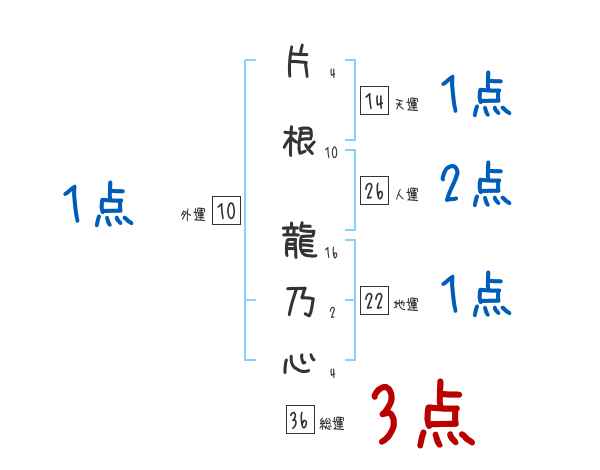 総運![]() | 片根龍乃心さんの総運は36画の3つ星!先見性が豊かです。多少神経質で苦労することも。 あなたの人生を表す1番重要な運勢です。生涯を通じて影響する総合運となり、主に50歳以降の晩年期に影響を及ぼします。 |