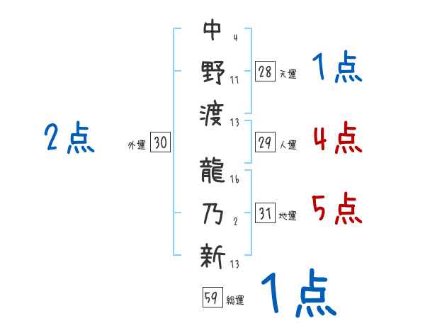 中野渡龍乃新さんの画数の鑑定結果