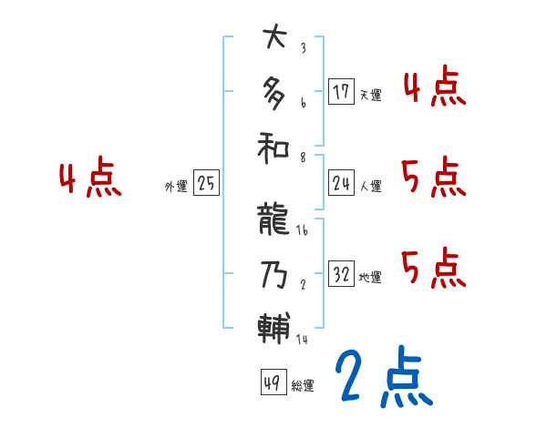 大多和龍乃輔さんの画数の鑑定結果