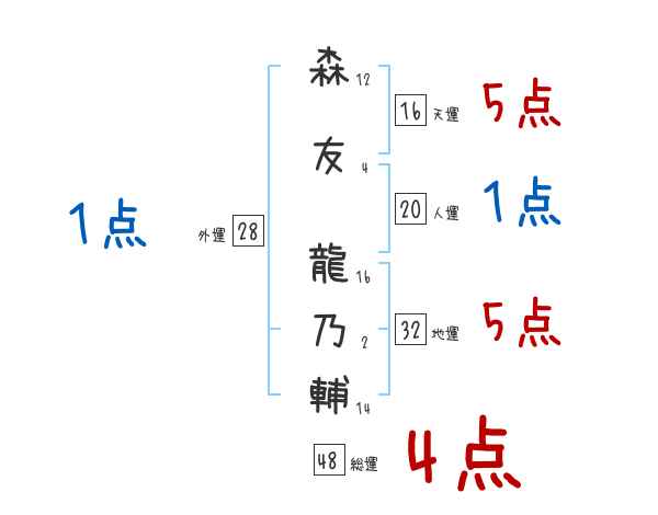 天運![]() | 森友龍乃輔さんの天運は16画の5つ星!人望が厚く大きく発展する。逆転成功が見える。 家系が持つ宿命的な運勢を表します。祖先から受け継いだ苗字ですので自分の力が及びません。家柄を象徴します。 |