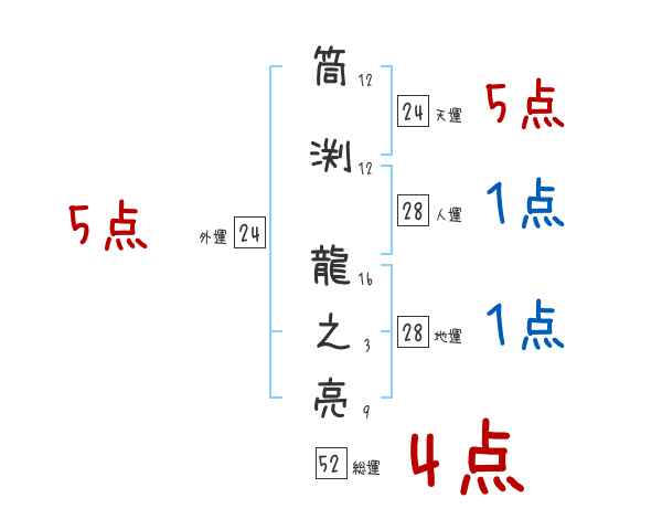 筒渕龍之亮さんの画数の鑑定結果