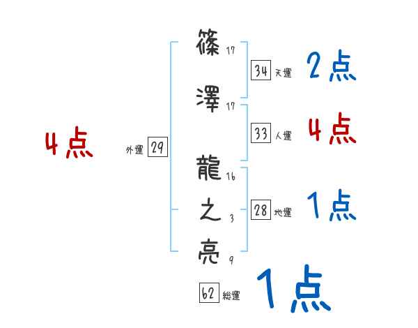 篠澤龍之亮さんの画数の鑑定結果