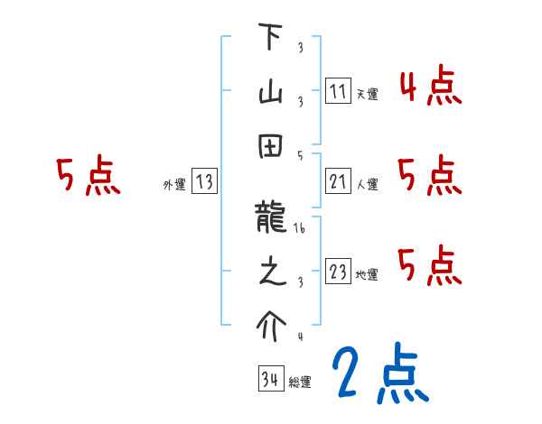 天運![]() | 下山田龍之介さんの天運は11画の4つ星!着実に富や地位を得る幸運な人生。 家系が持つ宿命的な運勢を表します。祖先から受け継いだ苗字ですので自分の力が及びません。家柄を象徴します。 |