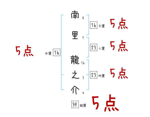 外運![]() | 南里龍之介さんの外運は16画の5つ星!人望が厚く大きく発展する。逆転成功が見える。 生活面を象徴する運勢です。外部から受ける影響力を表し、結婚運、家庭運や職場、環境への順応性を表します。 |