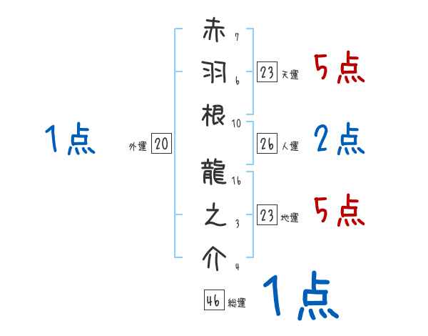 赤羽根龍之介さんの画数の鑑定結果