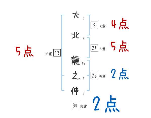 大北龍之伸さんの画数の鑑定結果