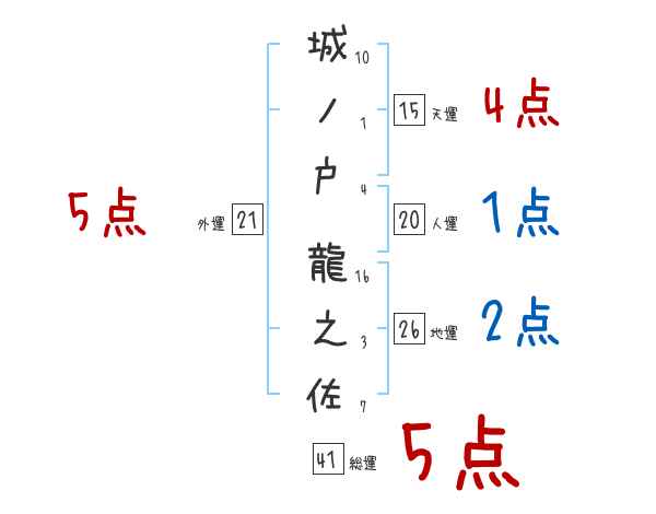 総運![]() | 城ノ戸龍之佐さんの総運は41画の5つ星!大志を抱き、目標に向かって実力を発揮し達成する。温和な性格。 あなたの人生を表す1番重要な運勢です。生涯を通じて影響する総合運となり、主に50歳以降の晩年期に影響を及ぼします。 |
