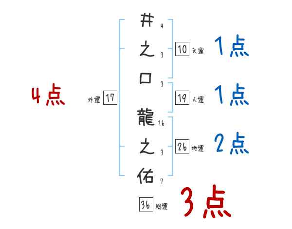天運![]() | 井之口龍之佑さんの天運は10画の1つ星!不安を感じやすい傾向。ストレスを抱えないように注意しましょう。 家系が持つ宿命的な運勢を表します。祖先から受け継いだ苗字ですので自分の力が及びません。家柄を象徴します。 |