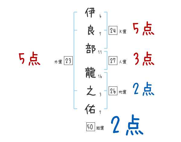 伊良部龍之佑さんの画数の鑑定結果