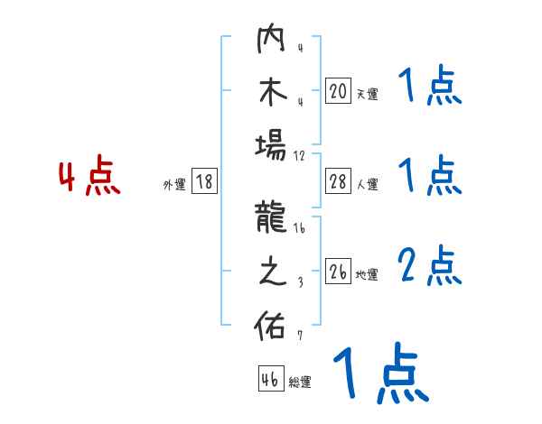 外運![]() | 内木場龍之佑さんの外運は18画の4つ星!情熱的で剛気。忍耐力があり信頼される。 生活面を象徴する運勢です。外部から受ける影響力を表し、結婚運、家庭運や職場、環境への順応性を表します。 |