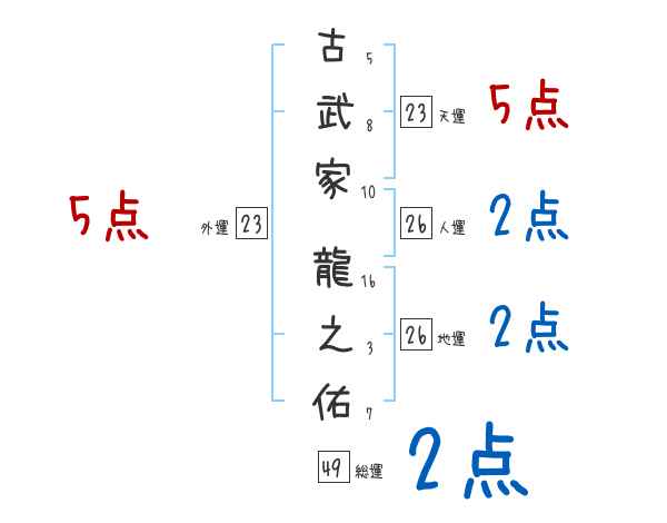 古武家龍之佑さんの画数の鑑定結果