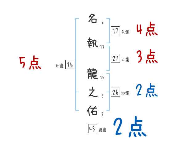 外運![]() | 名執龍之佑さんの外運は16画の5つ星!人望が厚く大きく発展する。逆転成功が見える。 生活面を象徴する運勢です。外部から受ける影響力を表し、結婚運、家庭運や職場、環境への順応性を表します。 |
