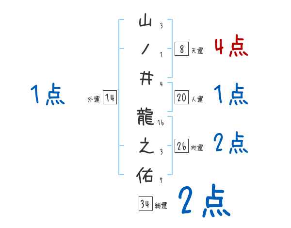 外運![]() | 山ノ井龍之佑さんの外運は14画の1つ星!人に対して優しいがストレスを溜め込みがち。人間関係のトラブルを避けるよう気をつけましょう。 生活面を象徴する運勢です。外部から受ける影響力を表し、結婚運、家庭運や職場、環境への順応性を表します。 |