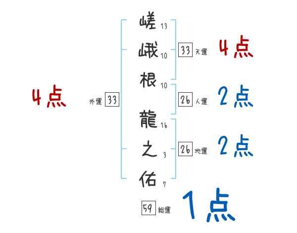 嵯峨根龍之佑さんの画数の鑑定結果