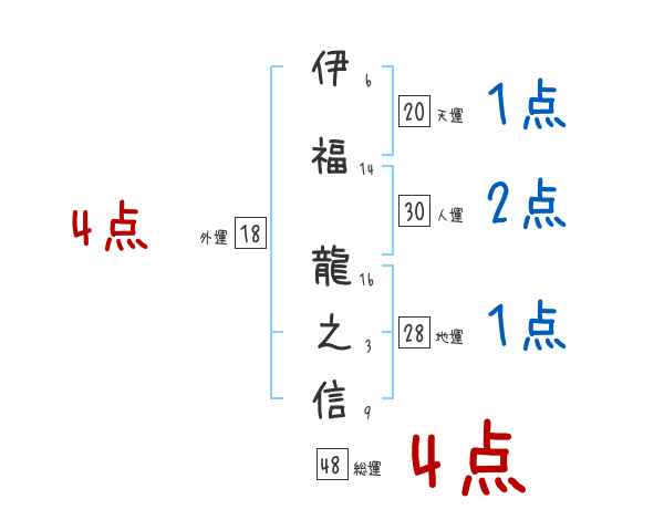 総運![]() | 伊福龍之信さんの総運は48画の4つ星!賢明な性格で人望が厚い。指導力があり多くの人に尊敬される。 あなたの人生を表す1番重要な運勢です。生涯を通じて影響する総合運となり、主に50歳以降の晩年期に影響を及ぼします。 |