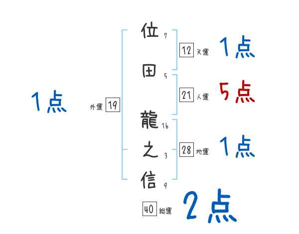 位田龍之信さんの画数の鑑定結果