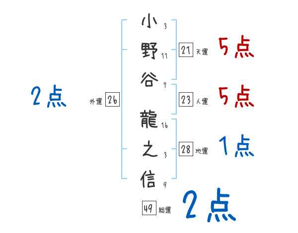 小野谷龍之信さんの画数の鑑定結果