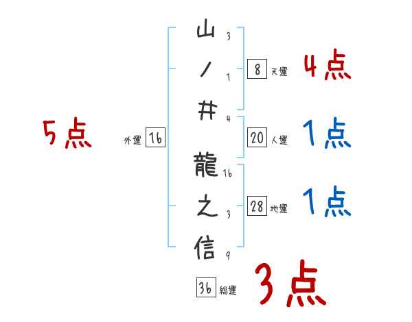 山ノ井龍之信さんの画数の鑑定結果