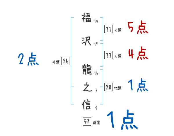福沢龍之信さんの画数の鑑定結果