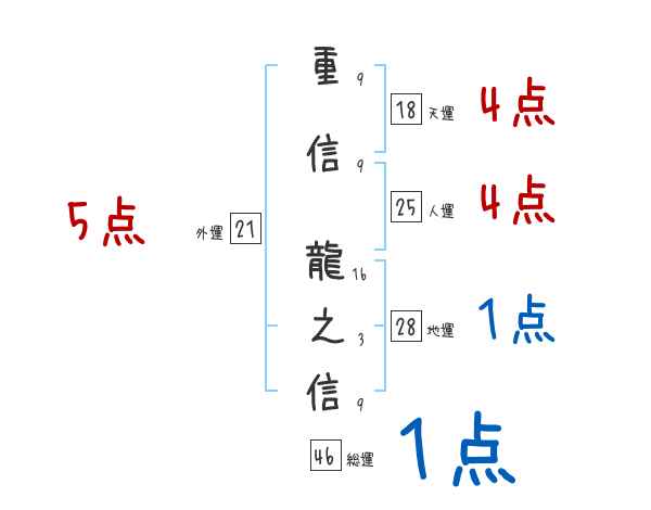 重信龍之信さんの画数の鑑定結果