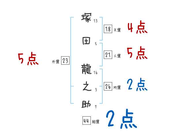 外運![]() | 塚田龍之助さんの外運は23画の5つ星!想像力に優れ活力がある。一代で成功し名誉を手に入れる。 生活面を象徴する運勢です。外部から受ける影響力を表し、結婚運、家庭運や職場、環境への順応性を表します。 |