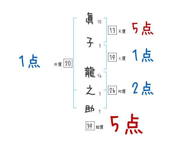人運![]() | 眞子龍之助さんの人運は19画の1つ星!優れた才能を持ちますが、協調性が足りないことも。周りの人と協力する事を意識しましょう。 性格や才能などを表す2番目に重要な運勢です。人間関係や協調性、社会的な成功に影響します。主に20歳から50歳ぐらいまでの中年期の運勢を表します。 |