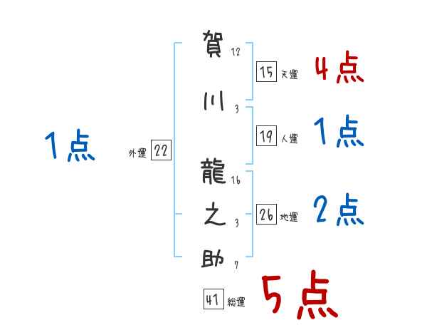 賀川龍之助さんの画数の鑑定結果