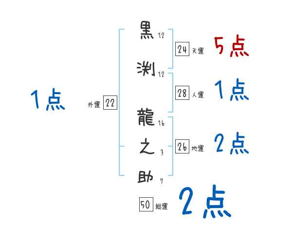 天運![]() | 黒渕龍之助さんの天運は24画の5つ星!家庭運が良く順調な人生。金運にも恵まれる。 家系が持つ宿命的な運勢を表します。祖先から受け継いだ苗字ですので自分の力が及びません。家柄を象徴します。 |