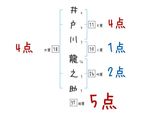 天運![]() | 井戸川龍之助さんの天運は11画の4つ星!着実に富や地位を得る幸運な人生。 家系が持つ宿命的な運勢を表します。祖先から受け継いだ苗字ですので自分の力が及びません。家柄を象徴します。 |