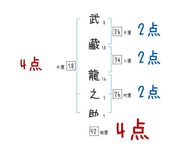 武藏龍之助さんの画数の鑑定結果